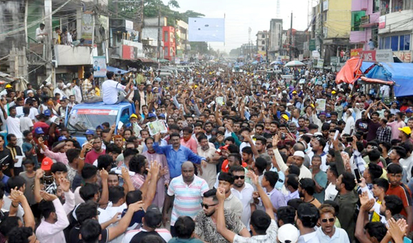 বুধবার (৮ অক্টোবর) বিকেলে ছাতকের রহমতবাগ এলাকা থেকে বিশাল শো-ডাউনের মধ্য দিয়ে ছাতক পৌর শহরে ৩১ দফার লিফলেট বিতরণ শেষে ট্রাফিক পয়েন্টে ছাতক উপজেলা ও পৌর বিএনপি এবং অঙ্গসংগঠন আয়োজিত বিশাল সমাবেশে প্রধান অতিথির বক্তব্যে তিনি উপরোক্ত কথাগুলো বলেন।