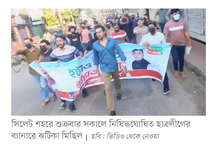 ভিডিওটিতে দেখা গেছে, সিলেট জেলা ছাত্রলীগের ব্যানারে ‘হটাও ইউনূস বাঁচাও দেশ’ লেখা ছিলো। মিছিলে ১৫-২০ জন নেতা–কর্মীকে অংশ নিতে দেখা গেছে।
