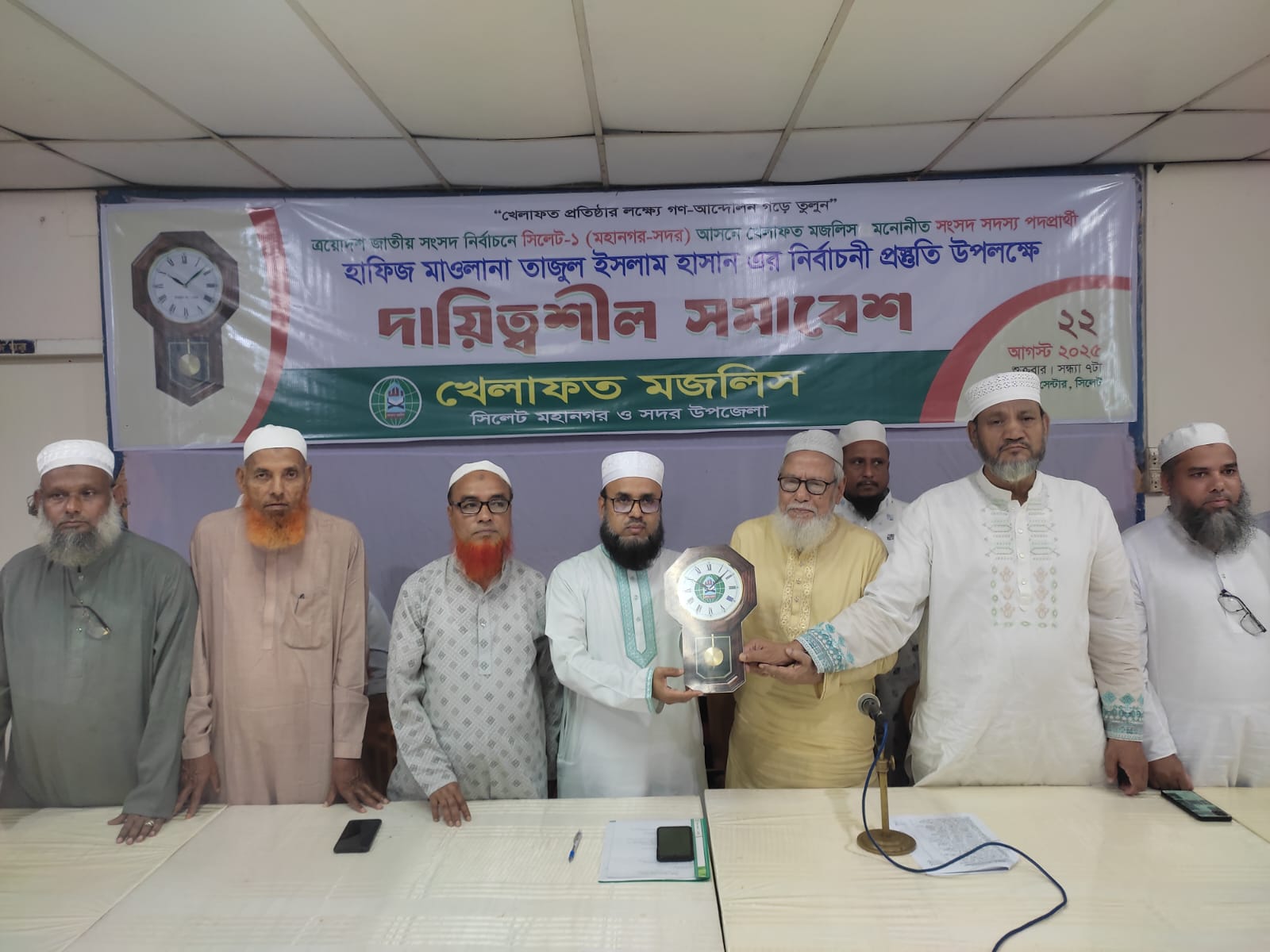 ২২আগস্ট, শুক্রবার সন্ধ্যায় নগরীর একটি কমিউনিটি সেন্টারে আয়োজিত দায়িত্বশীল সমাবেশে প্রধান অতিথির বক্তব্য রাখেন সংগঠনের কেন্দ্রীয় উপদেষ্টা ভাষা সৈনিক অধ্যক্ষ মাসুদ খান। প্রধান বক্তা হিসেবে বক্তব্য রাখেন সিলেট মহানগরী সভাপতি ও সিলেট ১ আসনের প্রার্থী হাফেজ মাওলানা তাজুল ইসলাম হাসান।
