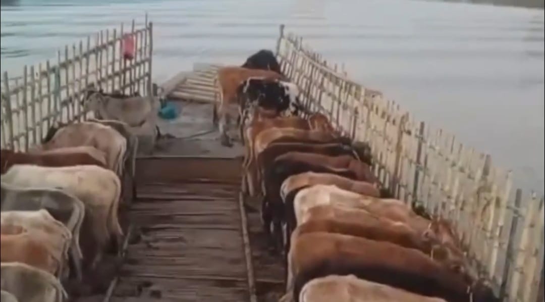 সুনামগঞ্জ প্রতিনিধি|সুনামগঞ্জের দোয়ারাবাজারে ভারতীয় সীমান্ত দিয়ে অবৈধ একটি গরুর চালান দেশের ভেতরে নিয়ে আসার পর চোরাকারবারীরা এই অবৈধ ৩১টি গরুর চালান নৌকাযোগে সুরমা নদী দিয়ে সুনামগঞ্জ হয়ে জামালগঞ্জের জয়নগর বাজার দিয়ে যাওয়ার পথে এই চোরাই গরুসহ নৌকাটি আটক করেছে সদর থানা পুলিশের একটি দল।